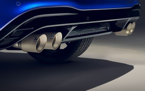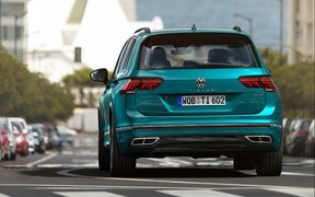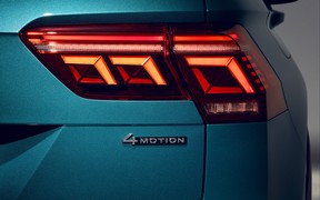 Две спаренные трапеции хромированных раструбов выхлопной системы, интегрированные в задний бампер — тоже привет от R-Line, в то время как новая «световая подпись» фонарей и название модели по центру крышки багажного отсека будут фишками всех обновленных «Тигуанов».